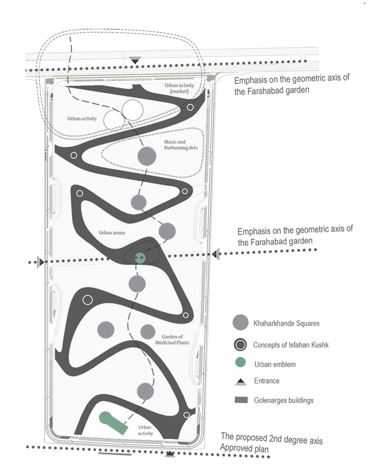 در این طرح تلاش بر آن بوده است که با توجه به فرصتهای بصری، دسترسی ها و فعالیت های پهنه ی بلافصل، عملکردهای مختلف خدماتی، تفریحی و فرهنگی در پارک مکان‌یابی شوند.