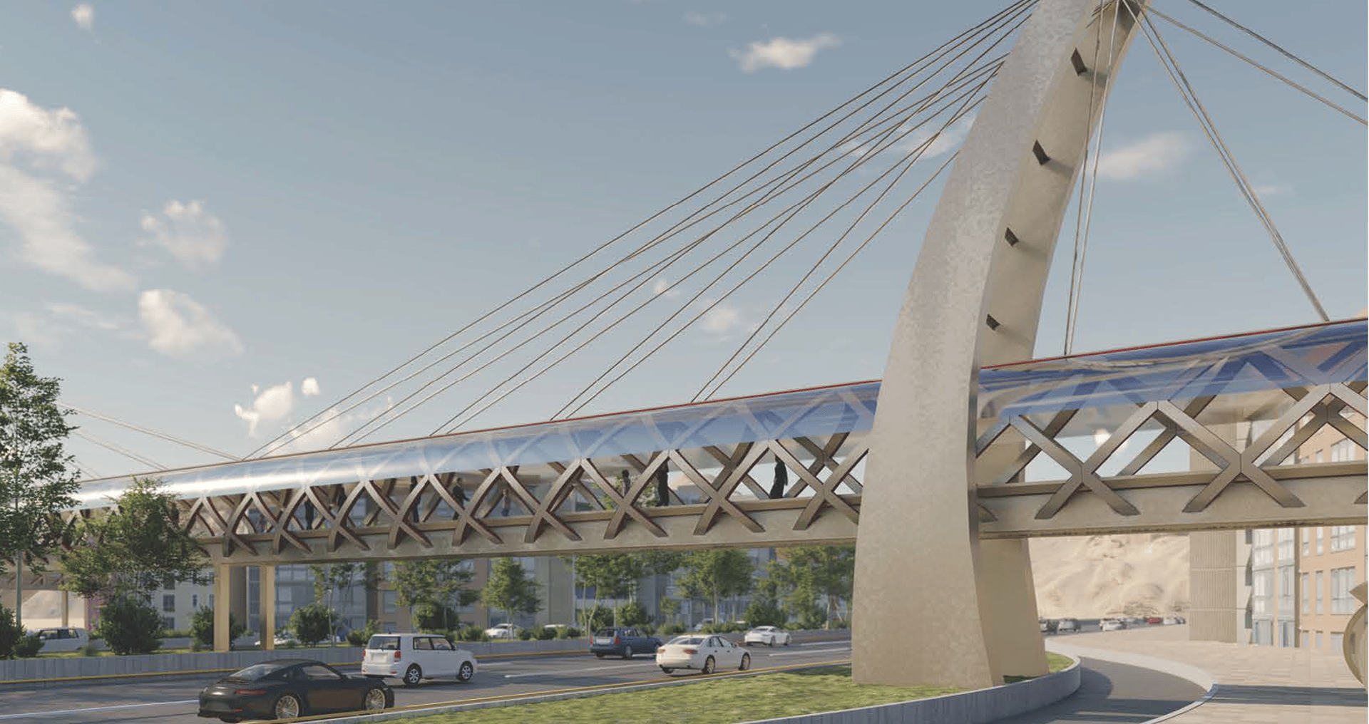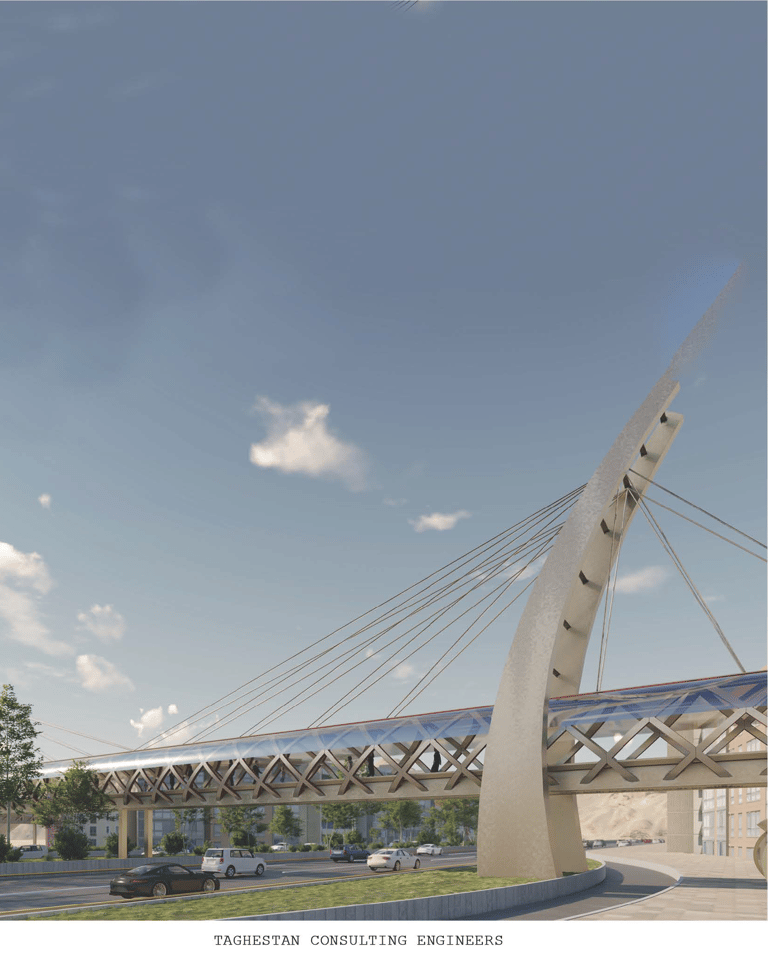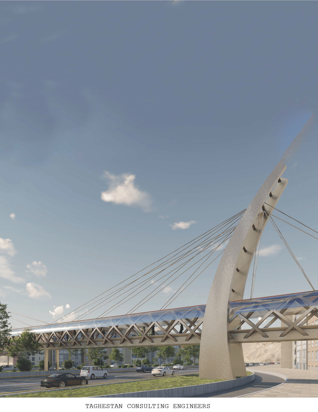 این پل با عبور از روی بلوار امام خمینی و بلوار عطار و ایجاد دو مسیر جهت اتصال پل به دو سمت بلوار عطار در قسمت جنوبی، همچنین پارک های دو سمت بلوار عطار را نیز به هم متصل میکند. این پل بنا به درخواست کارفرما دارای سازه ای متفاوت و شاخص است و آسانسور و پله برقی برای آن پیش بینی شده است. هماهنگ با طرح این پل یک ایستگاه اتوبوس در کنار آن جانمایی شده است.