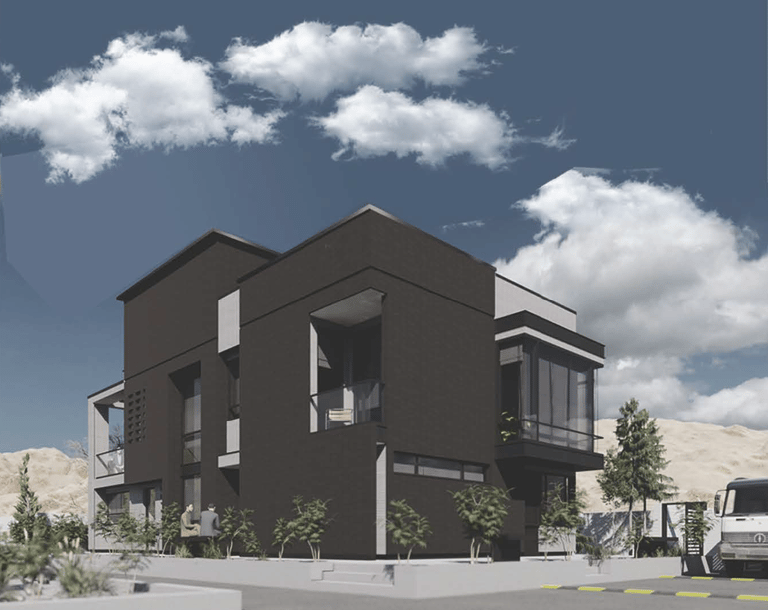 زمین موردنظر به منظور طراحی ساختمان‌های اداری و محوطه که شامل ۳۶ بلوک با سطح اشغال ۲۰۰ مترمربع بوده و در قالب دو تیپ ساختمان اداری پیشنهاد گردید.